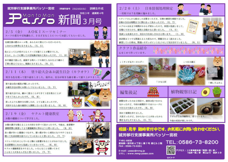 パッソ一宮校では3月のウエルカムボードを作成しました。