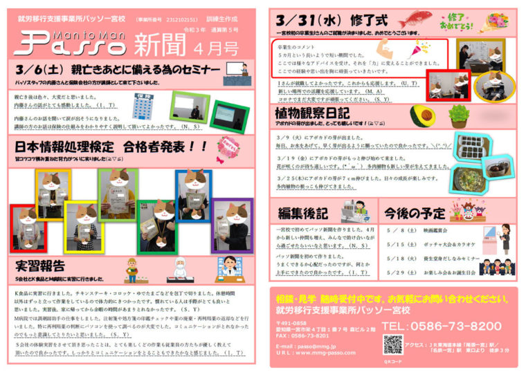 パッソ一宮校では4月のウエルカムボードを作成しました。