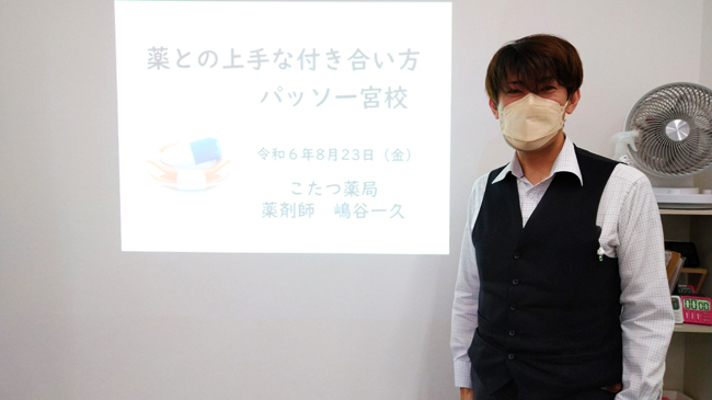 8月23日パッソ一宮校では、一宮市内にあるこたつ薬局の薬剤師嶋谷様にお越しいただき、「薬との上手な付き合い方講座」を開催しました。