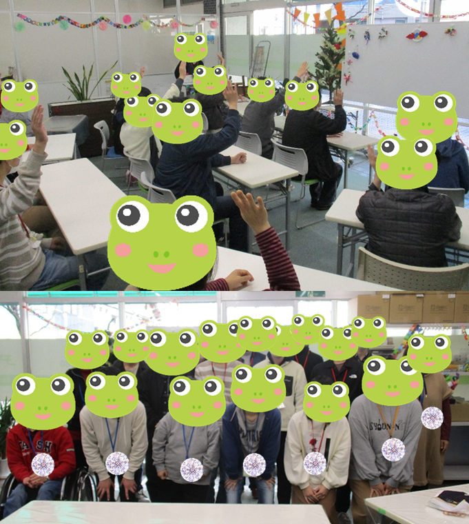 2021年12月11日 / 最終更新日時 : 2021年12月14日 wevadminn お知らせ 合同でクリスマス会を行いました。 12月11日の土曜日に、各務原の移行・工房の合同でクリスマス会を行いました。 皆で力を合わせ飾り付けから行い、ビンゴゲームとクリスマス三択クイズを楽しみました。