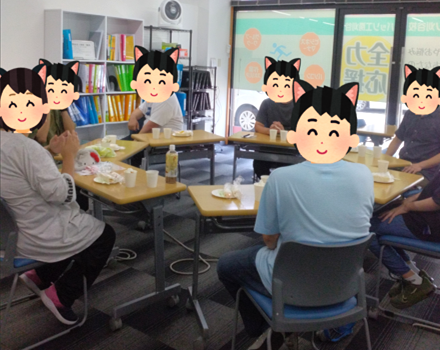 本日の土曜稼働では、余暇活動として「フルーツロールサンド作り」と「夏の思い出トーク」を行いました。