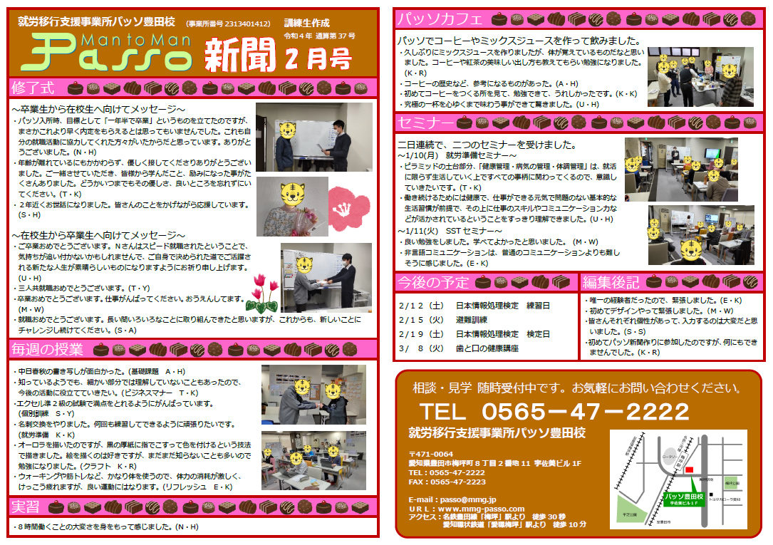 2022年2月9日 / 最終更新日時 : 2022年2月9日 wevadminn パッソ新聞 パッソ新聞2022年2月号を発行いたしました。 パッソ新聞2022年2月号を発行いたしました! バックナンバーは以下のページからダウンロードできます。 http://www.mmg-passo.com/newspaper/toyota2022/ 是非ご覧ください。