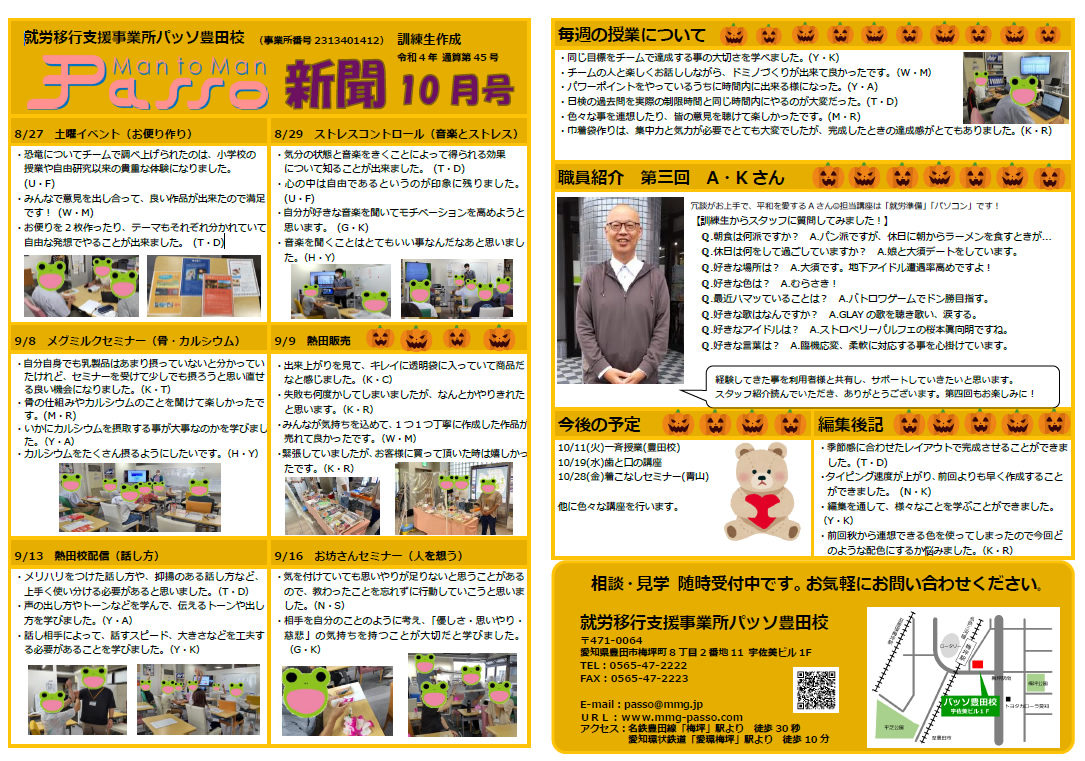 2022年10月6日 / 最終更新日時 : 2022年10月6日 wevadminn パッソ新聞 パッソ新聞2022年10月号を発行いたしました。 パッソ新聞2022年10月号を発行いたしました! バックナンバーは以下のページからダウンロードできます。 http://www.mmg-passo.com/newspaper/toyota2022/ 是非ご覧ください。