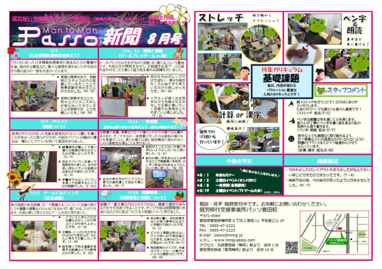 パッソ豊田校では色々なカリキュラムに取り組んでいます。ぜひ、一度足を運んでみてください🌷